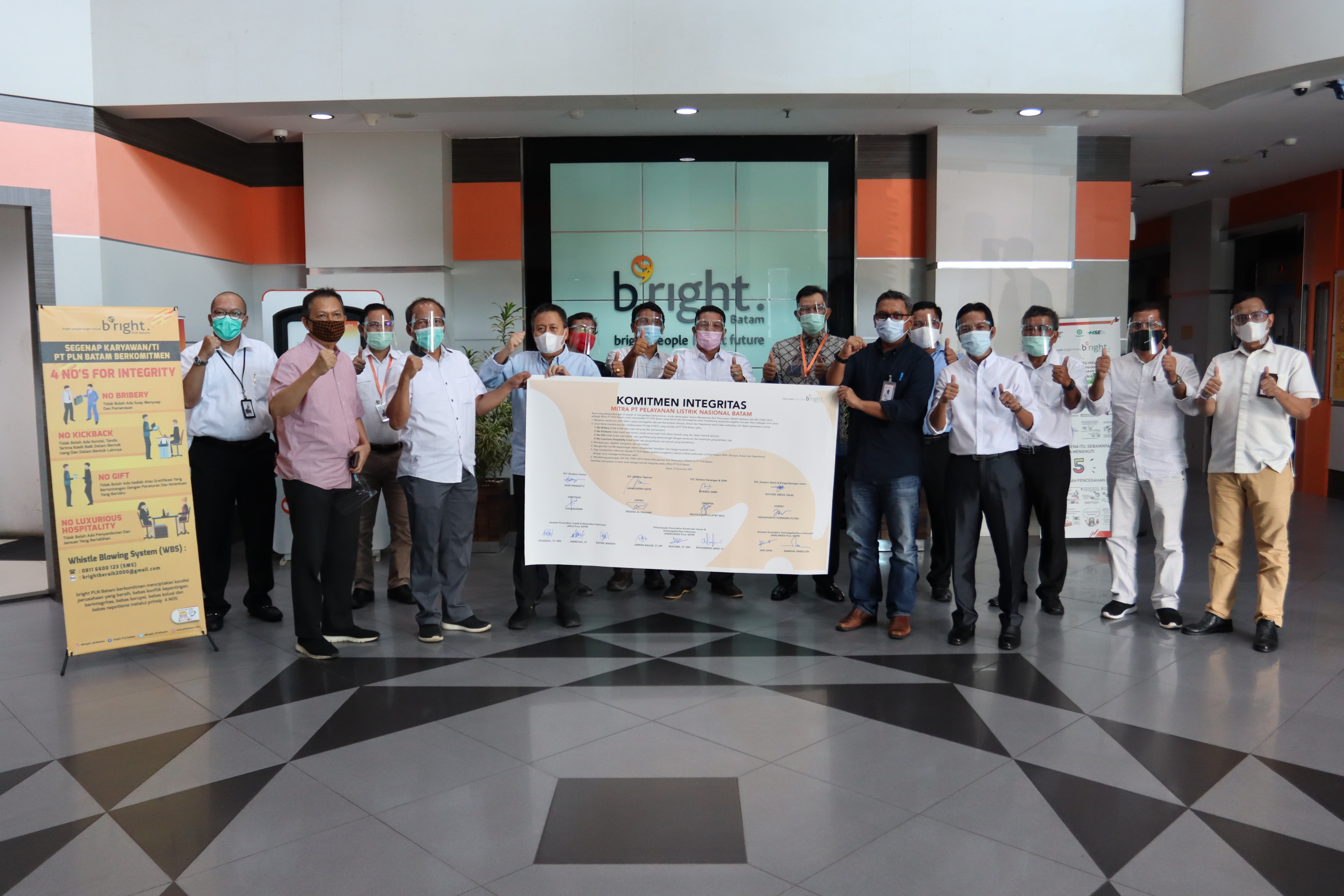 bright PLN Batam sebagai penyedia ketenagalistrikan utama di wilayah Batam dan sekitarnya berkomitmen menciptakan budaya perusahaan yang bersih dari praktik korupsi, kolusi dan nepotisme (KKN) serta penyuapan. Upaya konkret untuk mewujudkan komitmen tersebut diaplikasikan bright PLN Batam dengan mengundang para mitra dalam acara Silaturahmi dan Penandatanganan Sistem Manajemen Anti Penyuapan (SMAP) ISO 37001:2016 di Kantor Korporat bright PLN Batam, Rabu (18/11). Pertemuan ini dilakukan dengan memenuhi standar protokol Covid-19.