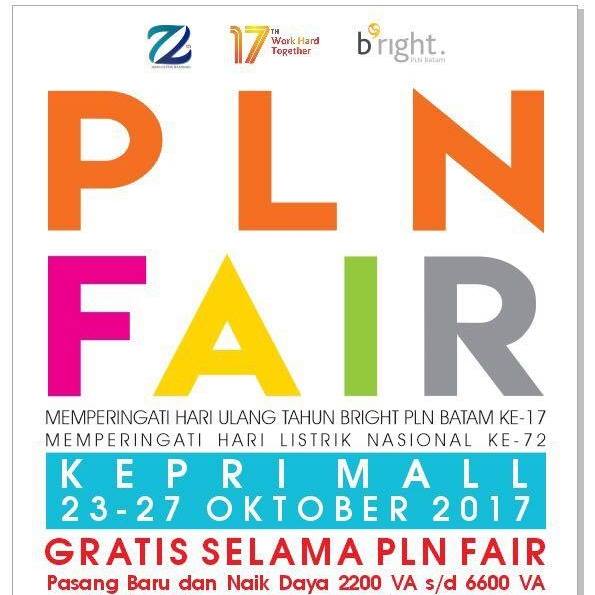 PT Pelayanan Listrik Nasional (PLN) Batam akan memperlihatkan berbagai produk dan program teranyar pada pameran kelistrikan (PLN Fair) yang digelar selama lima hari di Kepri Mall, Senin hingga Jumat (23-27/10) mendatang. Selama pameran, bright PLN Batam juga memberikan promosi (gratis) naik daya listrik golongan rumah tangga 2.200 VA hingga 6.600 VA . “Serta potongan biaya jaminan (UJL) bagi 250 pelanggan rumah tangga yang mengajukan pasang baru atau sambung kembali dengan daya 2200 VA hingga 6600 VA namun program ini tidak berlaku bagi pelanggan kolektif atau developer”, jelas Manajer Public Relations bright PLN Batam, Bukti Panggabean, Jumat (20/10).